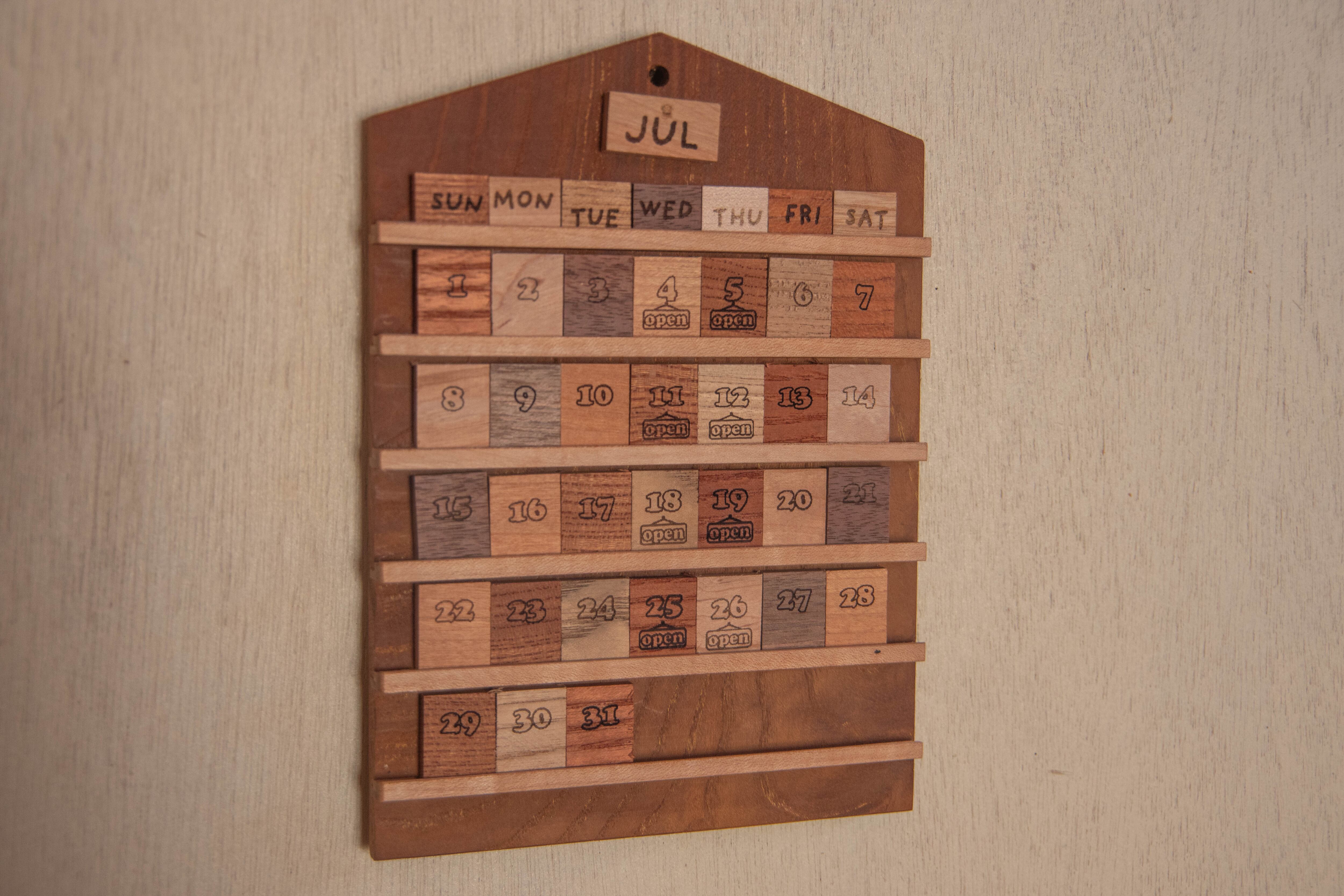 お店の営業日、記念日、お誕生日など「特別な日」を木のカレンダーで美しく際立たせたい方に。