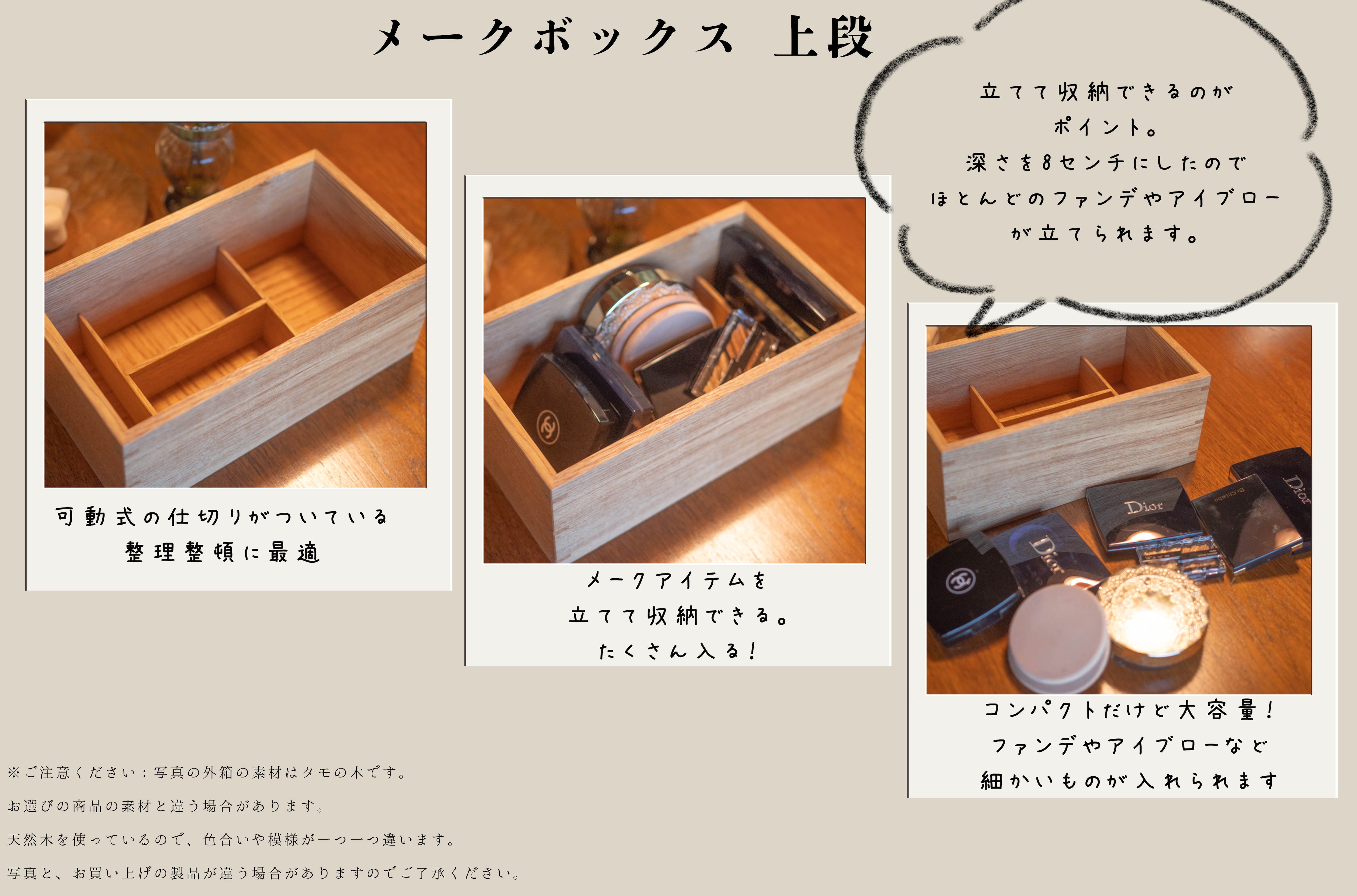 メイク道具をきちんとしまえる、木の2段ボックスが登場しました。