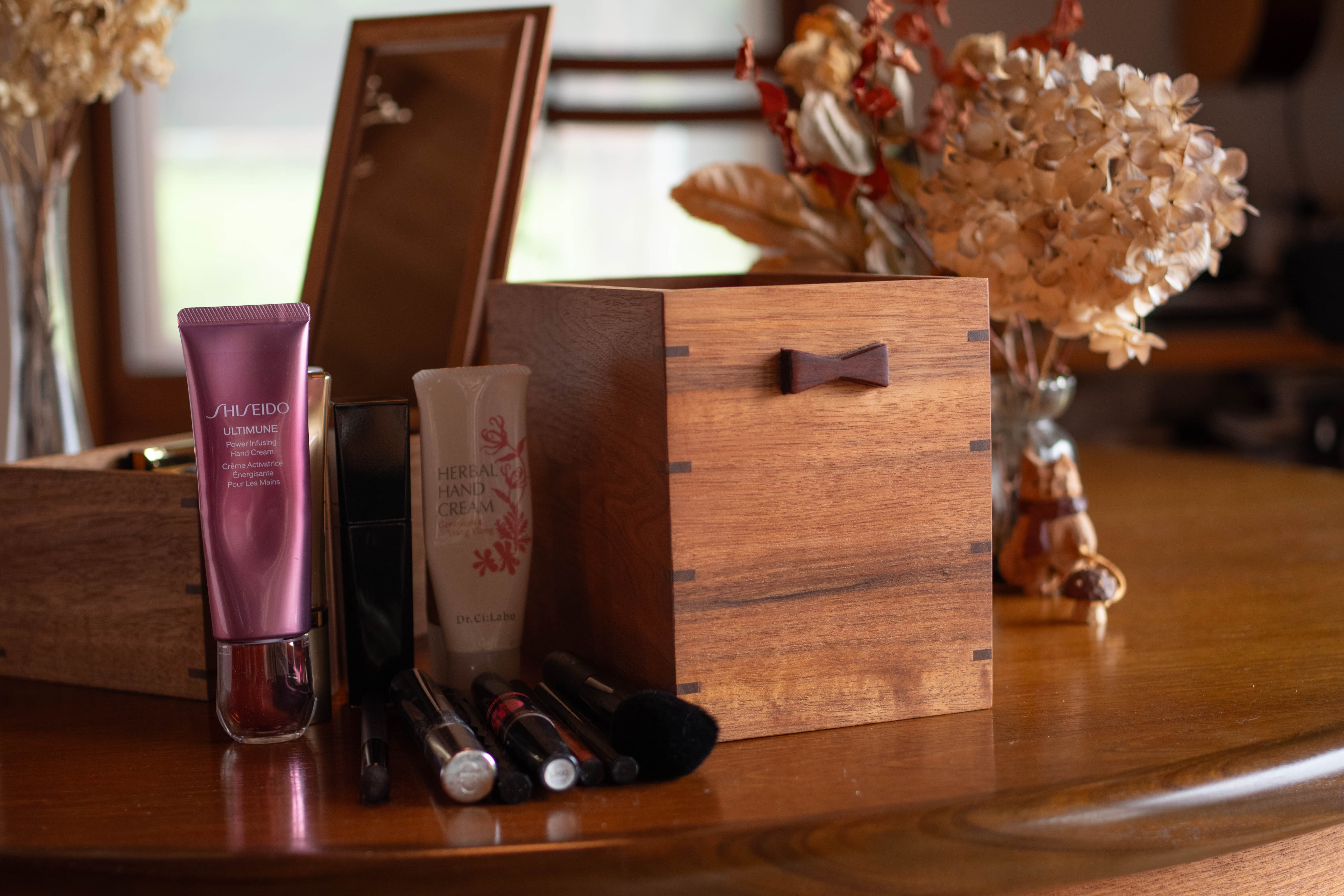 日常を少しだけ美しくしてくれる、木のメイクボックスです。